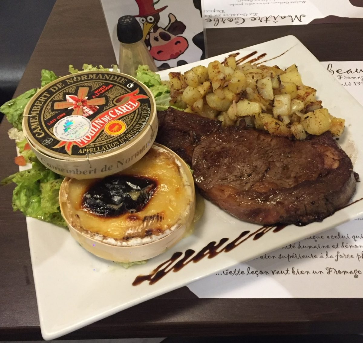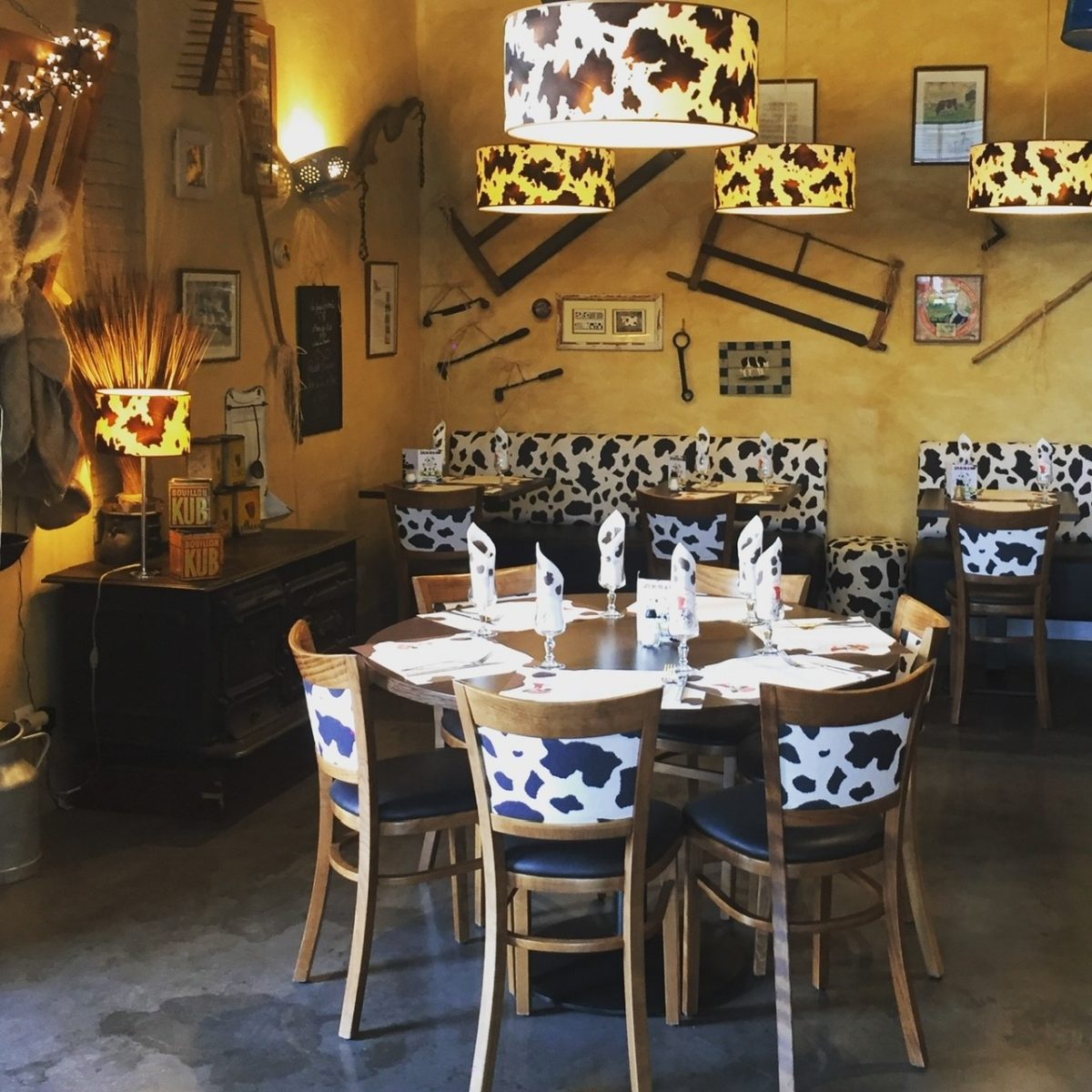 In a warm and rustic setting, where all the objects are there to make you travel to the land of cows and milk, come and taste tasty dishes prepared with quality cheeses.