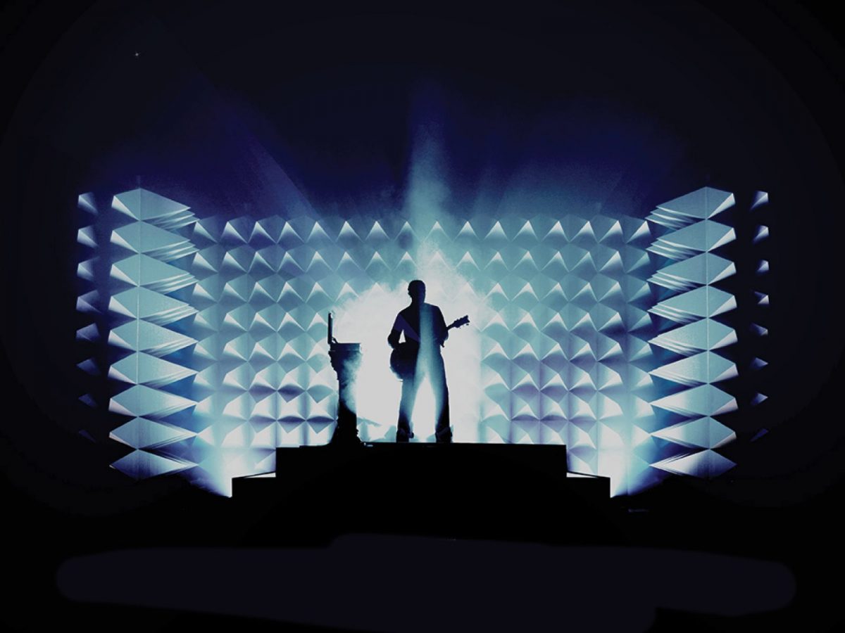 A protean artist, it is with great freedom that his love of guitars, rhythm boxes and synthesizers has led him to the very heart of a hybrid and singular stage proposition: alone in an anechoic chamber setting, surrounded by his machines and his guitar, he creates his own electronic and definitively rock formula, a kind of Machine-A-Billy. It's a unique performance in a setting designed and lit by the talent of Pierre Claude (Air, Phoenix, Gesaffelstein...).