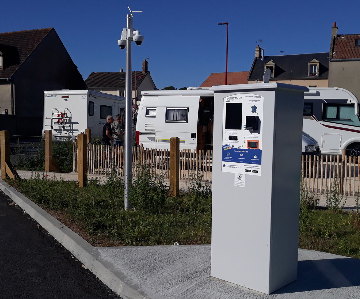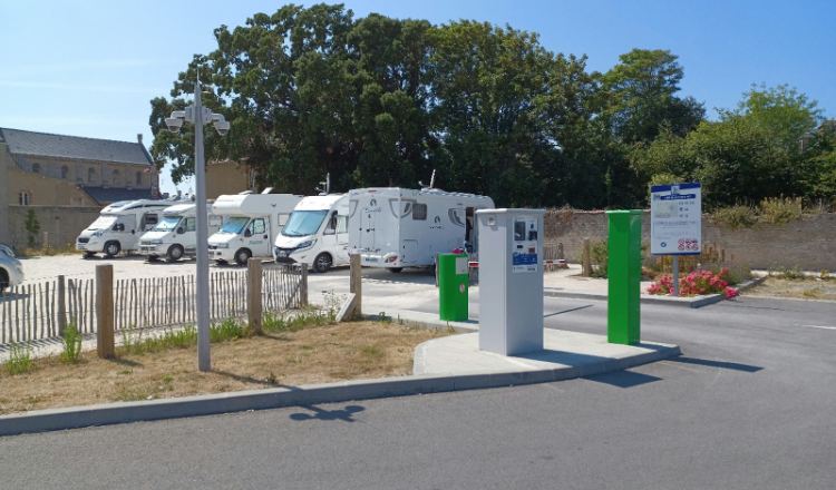 Service area with 10 pitches. Ideally located in the town centre, 300 m from the beach and close to the shops.Service terminal and dumping zone. Stop off on the D-Day beaches for a historical, natural and gourmet stay