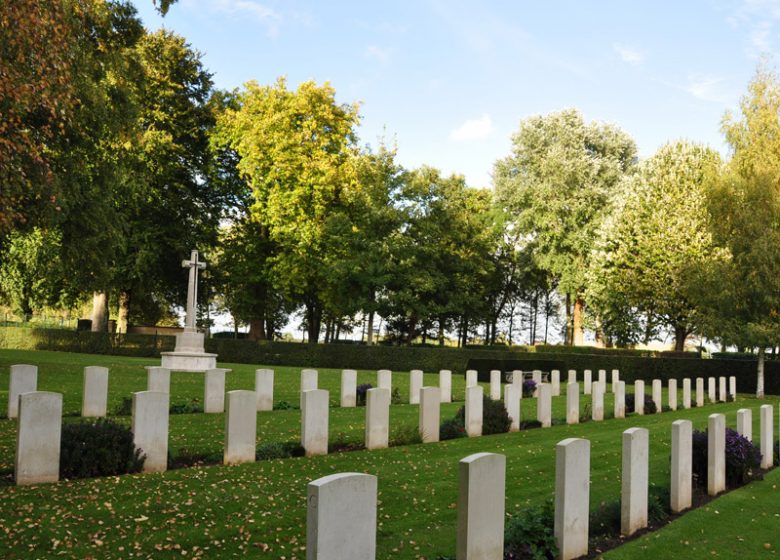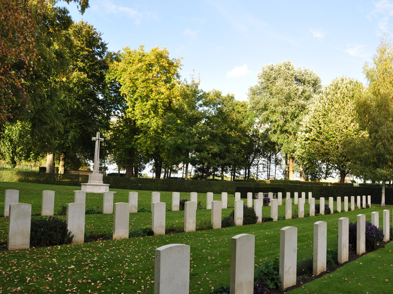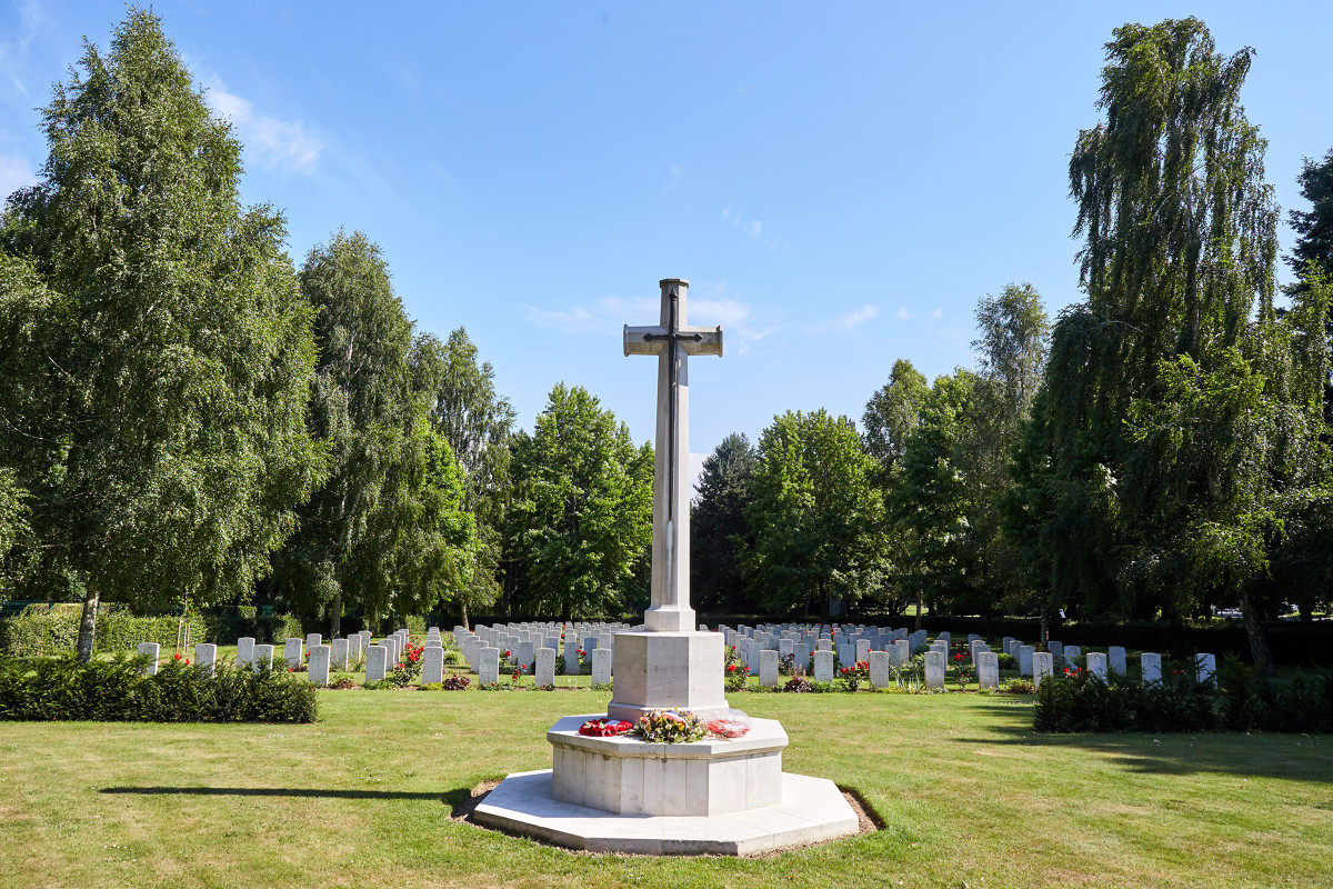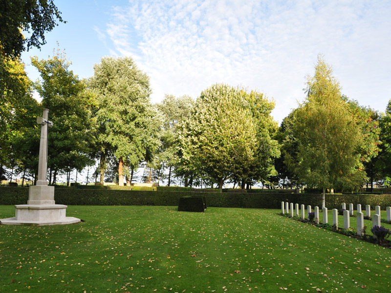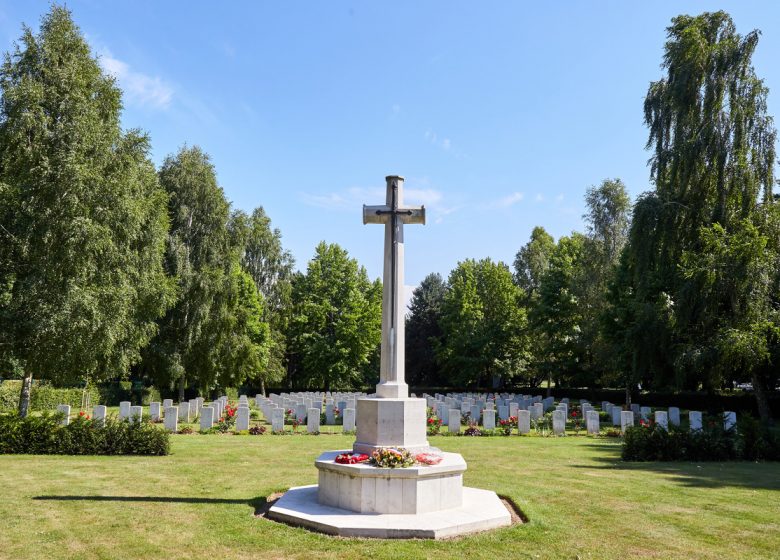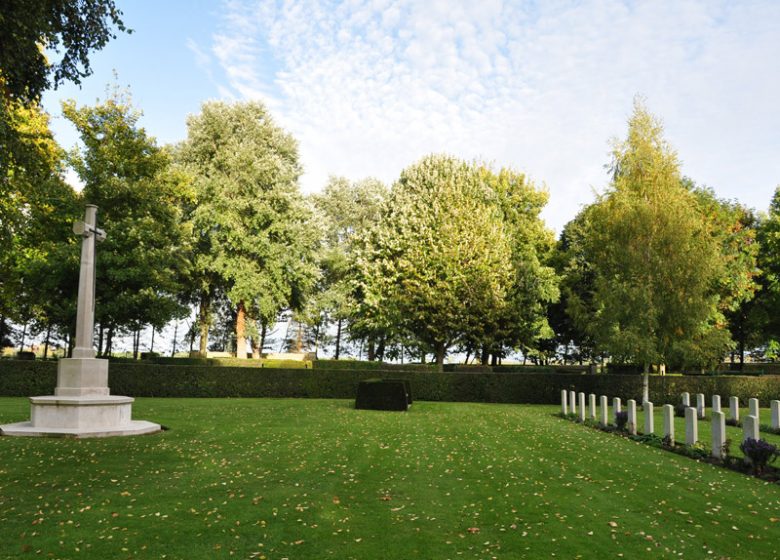 The cemetery is located 6 km from Caen, in the old grounds of the château in Cambesen-Plaine, which was bitterly fought over during the summer of 1944. The 222 British soldiers who lie here fought to liberate Caen, and were chiefly from two regiments of the Staf-fordshire Division: the North Staffordshire and the South Staffordshire.