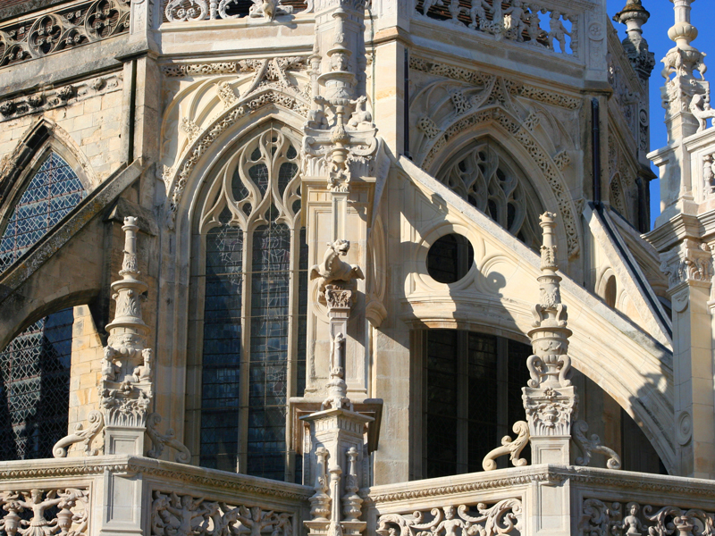 Built from the 13th to the 16th centuries, the church offers an interesting insight into the evolution of architectural styles: from Rayonnant and Flamboyant Gothic to Renaissance. Boasting a magnificent 14th century spire of a height of almost 260 feet, the church is currently undergoing restoration. Of particular interest: the choir vault, the Flamboyant Gothic ambulatory chapels, the carved capitals on the 3rd nave pillar, on the north side, presenting four scenes inspired by medieval novels on knighthood and satirical writings. Organ by J.F. Dupont, built in 1997.
