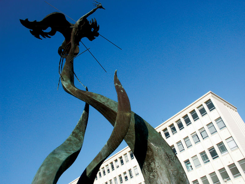 Louis Leygue's sculpture, the Phoenix, marks the entrance to the campus and symbolizes the rebirth of the institution and, more generally, of the city. He created this work at the request of Henry Bernard. It measures 7.80 m high, 2.80 m wide and 1.70 m deep.