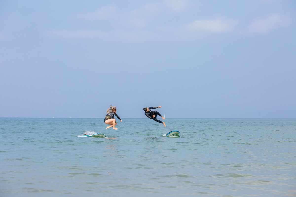 Once the tide times have been checked and the neoprene suit put on, it is time to practice on the board, in the water! However… Finding your balance was easier said than done. After some loud laughter and some paddle strokes, we started to feel comfortable on the board. If we had one piece of advice to give to someone starting out on a paddle board, it is to look as far as you can towards the horizon.