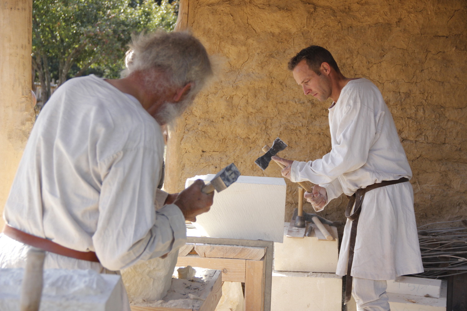 A little further on, we meet the village carpenter, who is building tiles for the roofs of the houses. We then learn that all the houses in the village have been authentically reconstructed following archaeological excavations! And everything was done down to the smallest detail… By visiting the interior, you can even see the furniture and tableware used at that time. We then imagine ourselves in the life of the Carolingians…