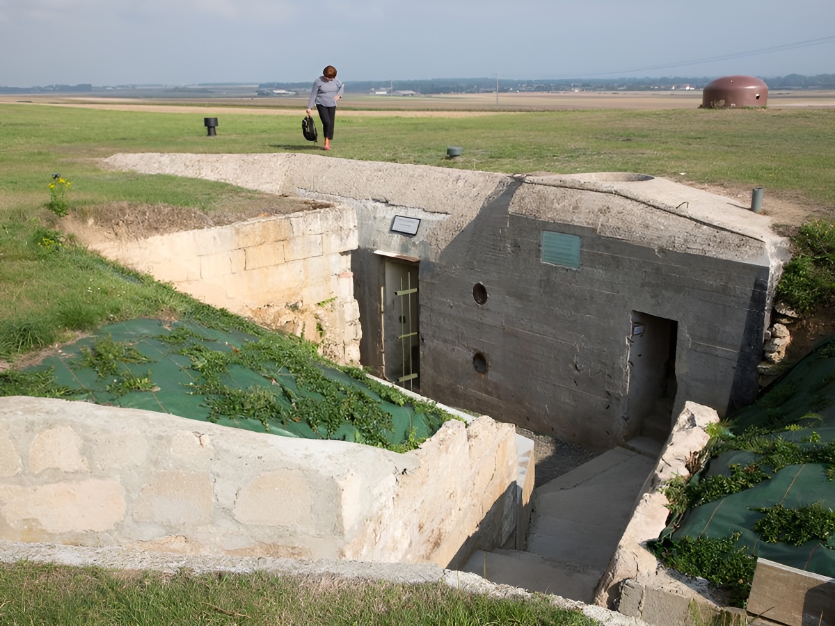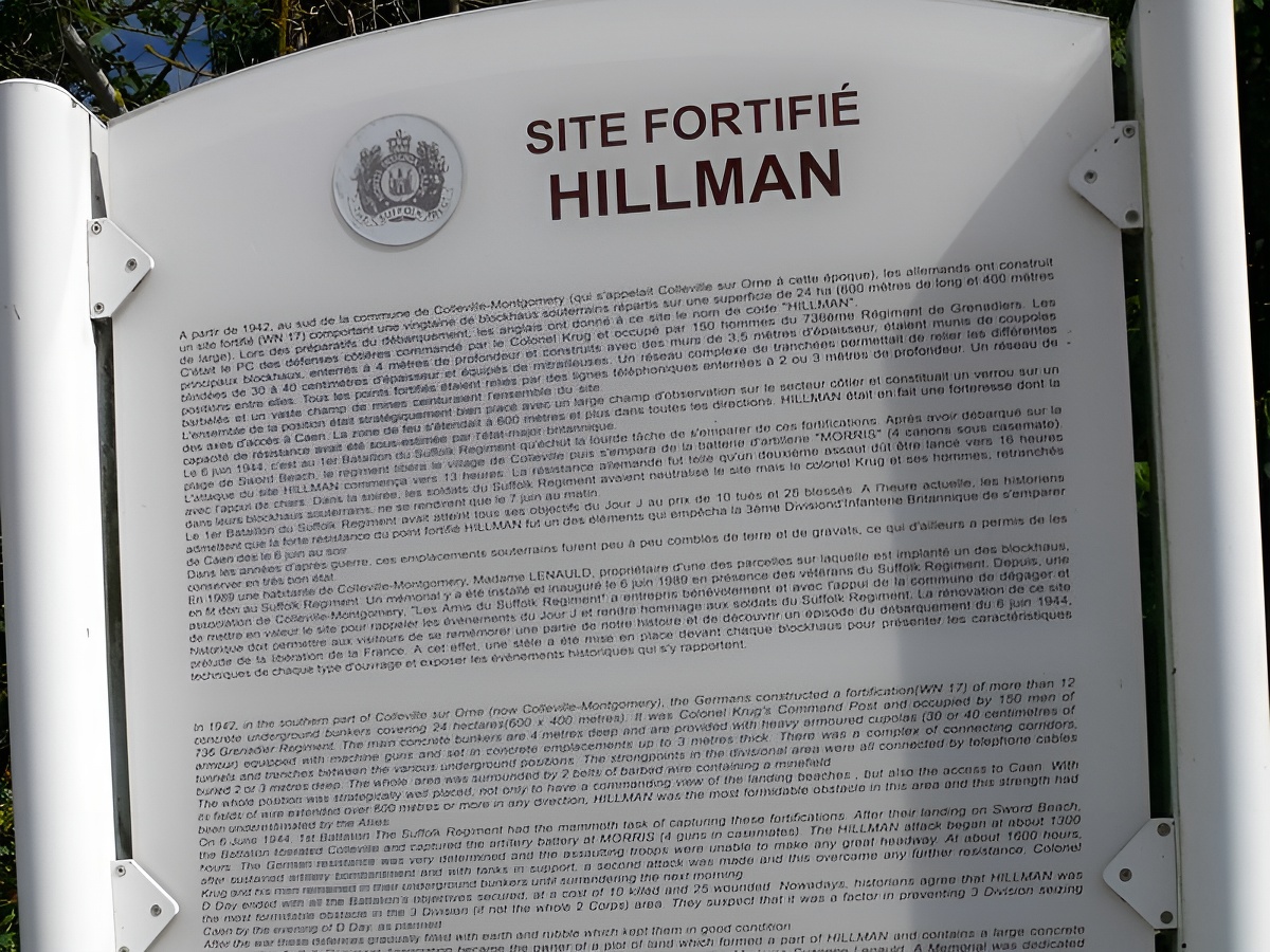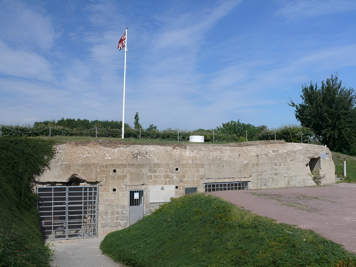 The 24ha site with 18 blockhouses and underground tunnels built by the Germans between 1942 and 1944 was the command post for the Côte de Nacre coastal defence. Memorial for the 1st battalion of the Suffolk Regiment who captured this site on June 6th 1944.
