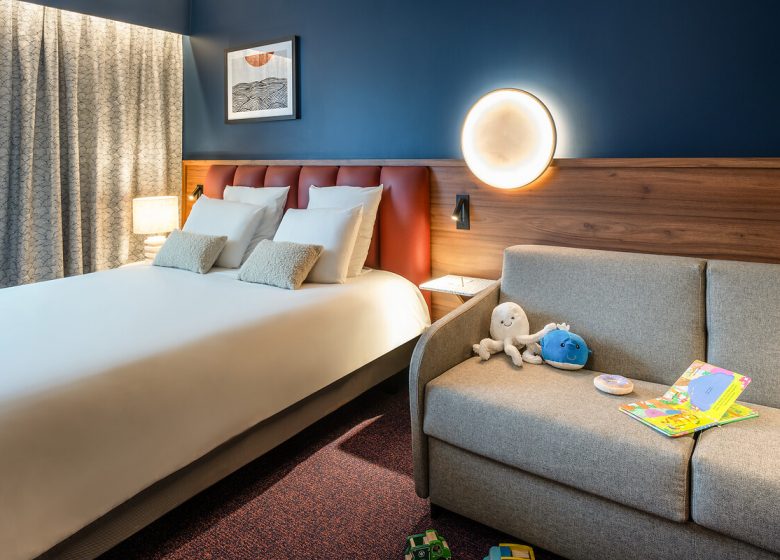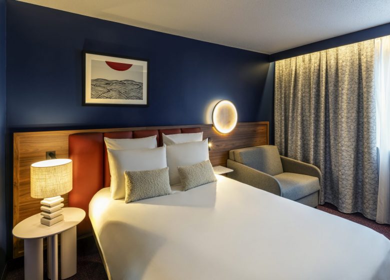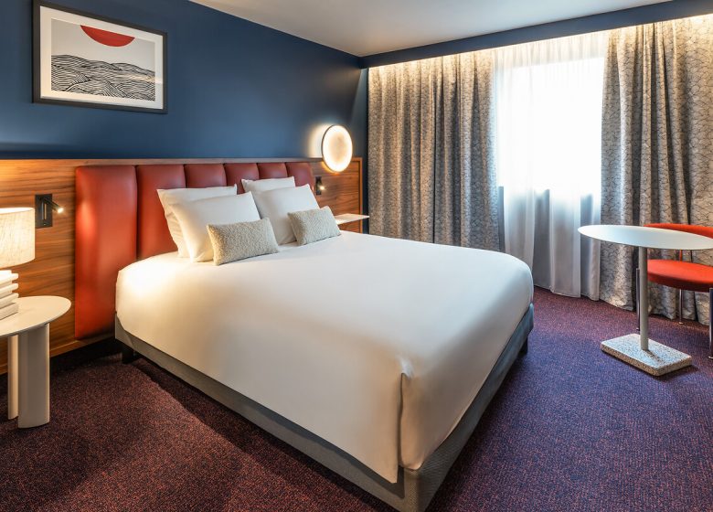 Located just 10 minutes from the centre of Caen via the 'Citis' tram opposite the establishment, Mercure Caen Côte de Nacre is the perfect starting point from which to explore Caen-la-Mer. Just a stone's throw from the Mémorial de Caen and 10 kilometres from the D-Day Landing beaches, it allows groups to make the most of this destination's historic and natural wealth. The hotel offers 88 renovated rooms for one to four people, all air-conditioned and comfortable. It's perfect for groups, with a large, free 100-space car park, high-speed Wi-Fi throughout the hotel and a gym. Option to organise receptions and company retreats, as well as leisure trips. The Bistrot Mirlot restaurant welcomes you to a warm and friendly atmosphere. Here, we serve up homemade cooking made with fresh ingredients, highlighting the great classics of French cuisine: œuf mayonnaise, stuffed cabbage rolls, ribeye steak and chocolate profiteroles. A terrace is also available in the fine weather for relaxing moments in the fresh air. Awarded the 'Green Key' label, our hotel is fully committed to a sustainable-tourism model, adopting eco-friendly practices in our everyday work. This commitment allows groups to stay in an environmentally respectful establishment, without compromising on comfort or quality.