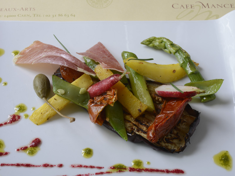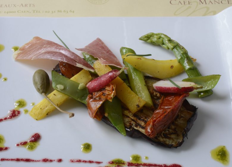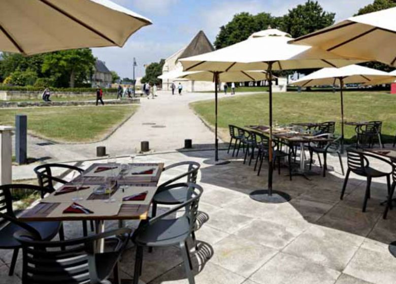 Le Mancel, is a restaurant established within the very walls of Caen’s ducal castle, next to the Fine Arts Museum and the Normandy Museum, and just a short walk from St Peter’s Church and the historic town centre. It is located opposite the castle ramparts and the charming statues garden. Opened in 1994, it pays tribute to Pierre Bernard Mancel, who was a Caen-born bookseller and collector. Pierre Bernard Mancel, a humble donator, bequeathed 45 17th-century Dutch paintings and a few other Italian and Flemish works to the town of Caen upon his death in 1872. They included Virgin and Child by Rogier van der Weyden and St James by Cosimo Tura, together with objets d’art and his print collection, all of which are displayed within the Fine Arts Museum.