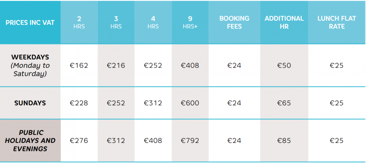 * 8hrs guide + 1hr lunch break.