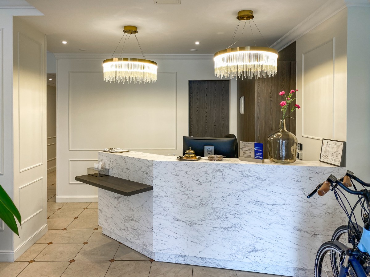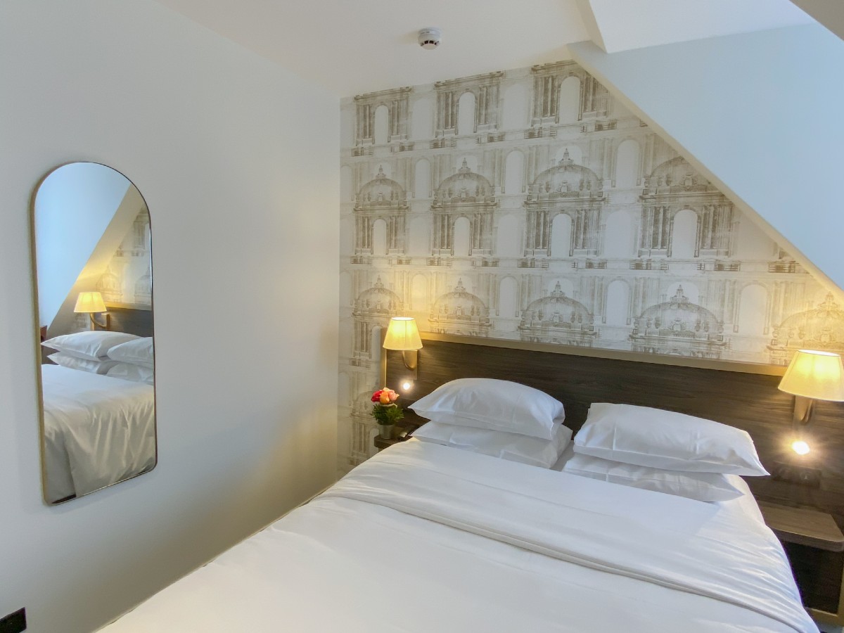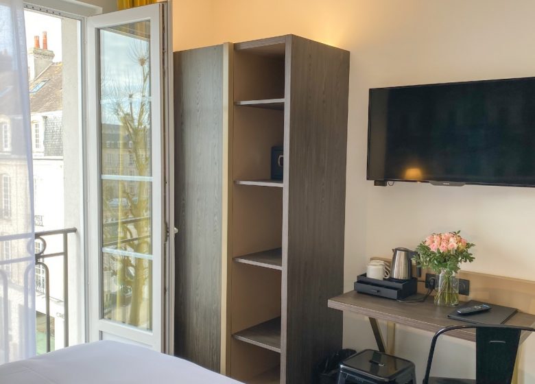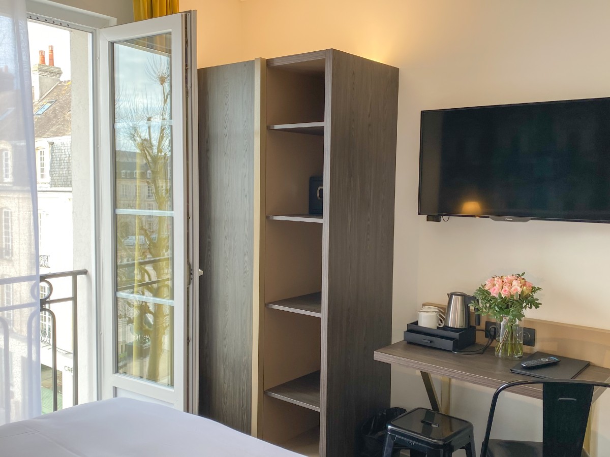 In the immediate vicinity of Caen's pedestrian district, the theatre, the congress centre and the restaurants, the Royal Hotel welcomes you day and night, all year round, in a renovated and restructured setting, fully air-conditioned, offering you a free Wi-Fi connection in all areas. Its 47 personalized and soundproofed rooms, individual and family, are all fully equipped. Our pleasant lounge-bar invites you to relax after a day of visits or work. Every morning, a hearty breakfast buffet awaits you in a cosy room, decorated with care, but you can prefer the pleasure of breakfast in bed.