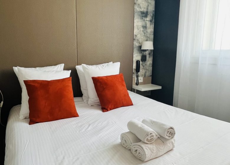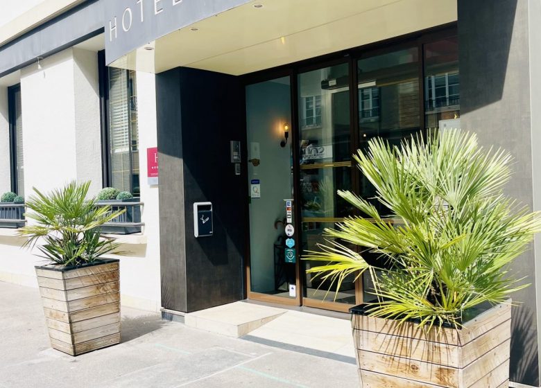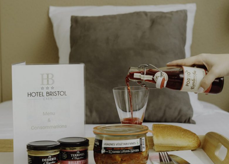 A smiling welcome, elegant rooms, a comfortable bar.. Welcome to the Hotel Bristol located in the city centre with quick access to all the resources of Caen. It is also an ideal location to visit the sites of the Battle of Normandy, to walk on the beaches, to discover the history of William the Conqueror or to take a green bus to discover Calvados. For cyclists, it is either the possibility of leaving the bikes and discovering the town on foot or of setting off along the cycle paths, greenways or other developed routes. Possibility of meals in jars made in Normandy.