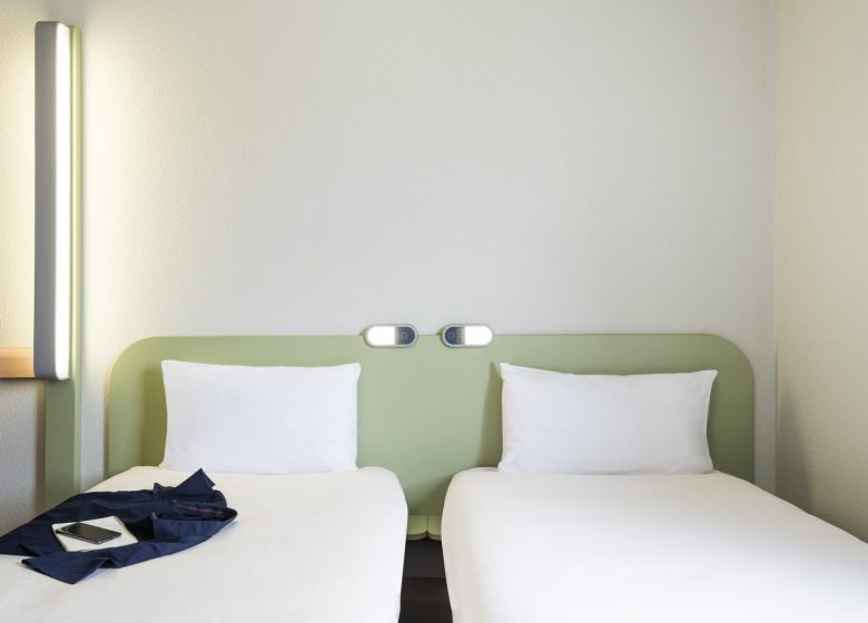 Located in Bretteville sur Odon, the Ibis Budget Caen Porte de Bretagne is easily accessible from the A13 and A84 motorways. Just 10 minutes from Caen city centre, it features 75 rooms, a 24-hour reception, a secure private car park and a Courtepaille restaurant nearby. the Caen Memorial is 5 km away, the Zenith and the exhibition centre 10 minutes away. The beach of Ouistreham is 20 minutes away. Caen airport and the Festyland theme park are 5 minutes away.