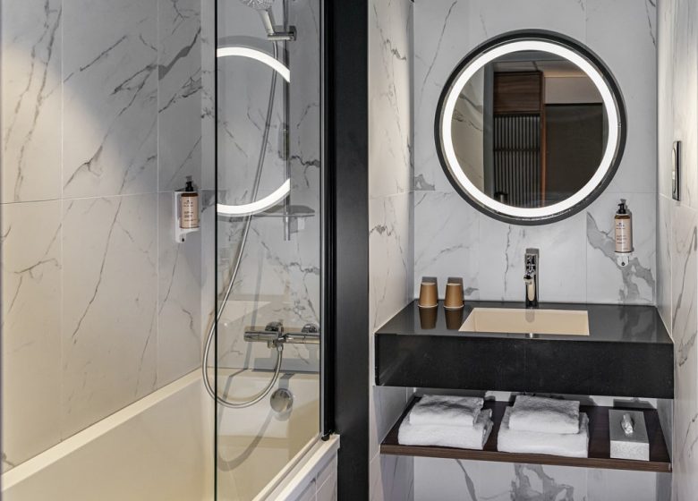 Our + in favor of sustainable development : The Mercure offers sustainable options, such as glass bottles, recycled cardboard cups, unpackaged products and seasonal food.