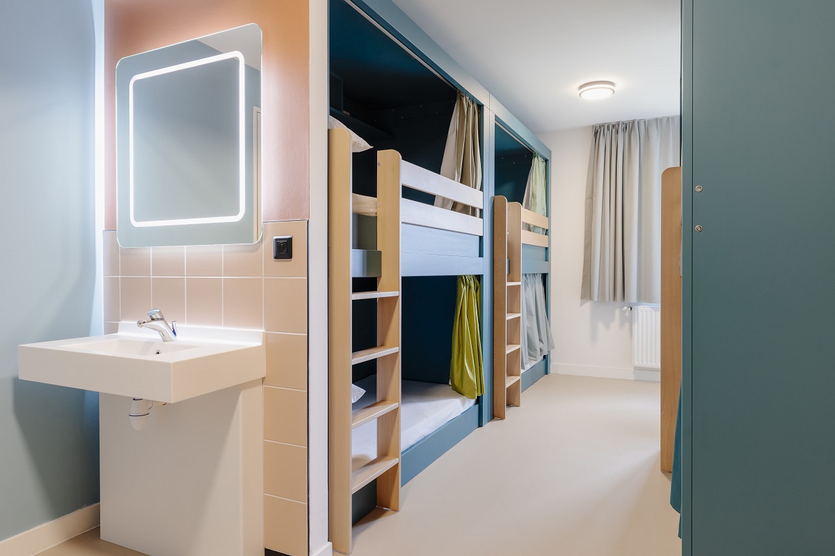 Sixty rooms in different configurations (double, twin, family, dormitory bed, private dormitory), a total of 210 beds to meet all your needs.