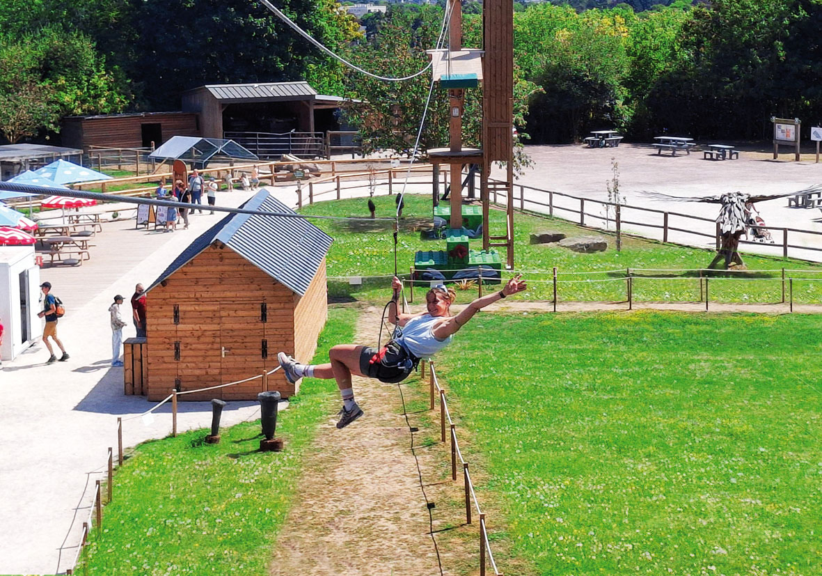 AccroCamp Caen is an innovative freestanding treetop adventure on the beautiful Colline aux Oiseaux. It's the perfect place for soaking up the great outdoors among family or friends. Feel the rush and make memories: cross the suspension bridges, soar on Tarzan swings, ride down the zip-lines and tackle unique outdoor climbing routes! Age: 3 and over (min. height: 1m).
