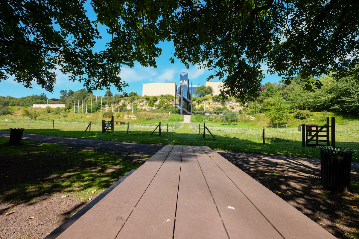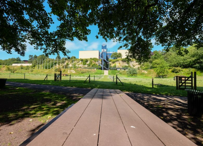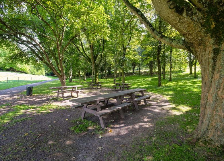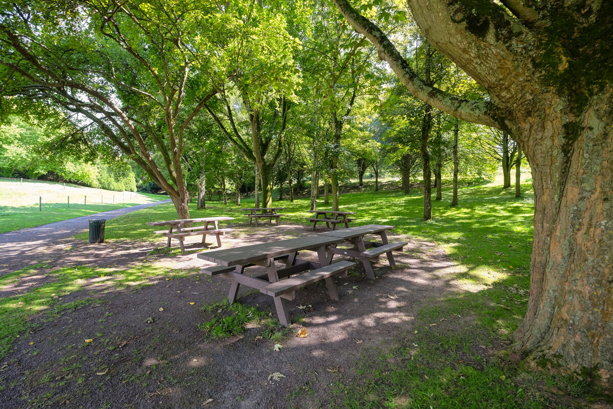 In the Memorial valley, below the museum, 5 picnic tables are available in the shade of trees with a view of the museum. Free access via the Remembrance Gardens or from the Hill of the Birds parking. No nearby parking.