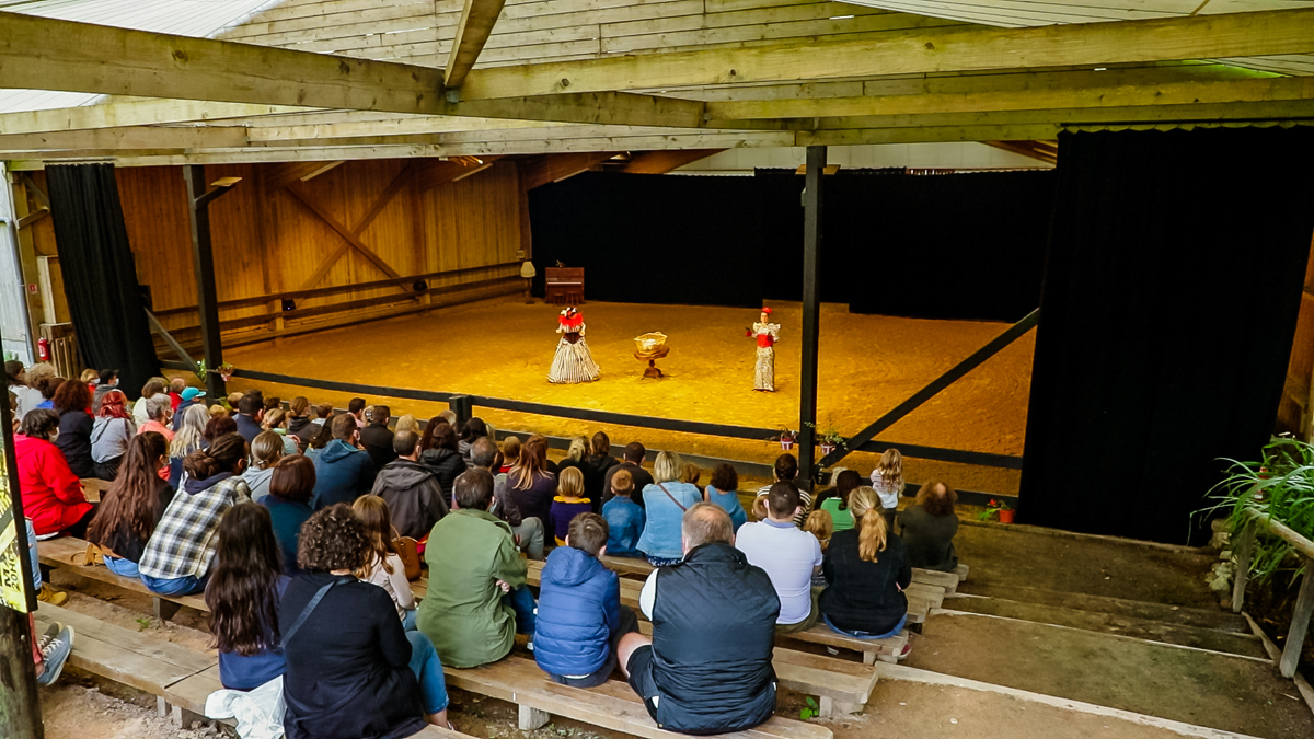 Our + in favor of sustainable development : The Equestrian Theater is located on 10 ha of greenery housing a multitude of wild and domestic animals, preserving an abundant flora and fauna. The estate is maintained without pesticides and in an eco-responsible approach to limit the impact of its activities on the environment (recycling, water and energy management, organic products, dry toilets, etc.). Since 2020, more than 1000 trees have been planted there to improve biodiversity. Some wood species, such as willow, are used for making sets and costumes.