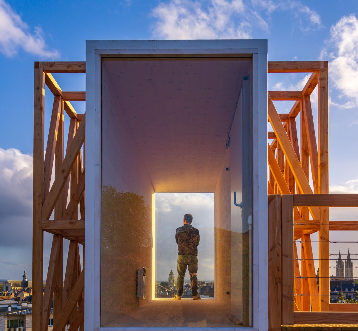 Every morning and every evening, 365 days a week, a person is brought to watch over Caen and its surroundings for an hour, from a shelter object overlooking the city. Link by link, a human chain of 730 watchmen will form throughout the year.