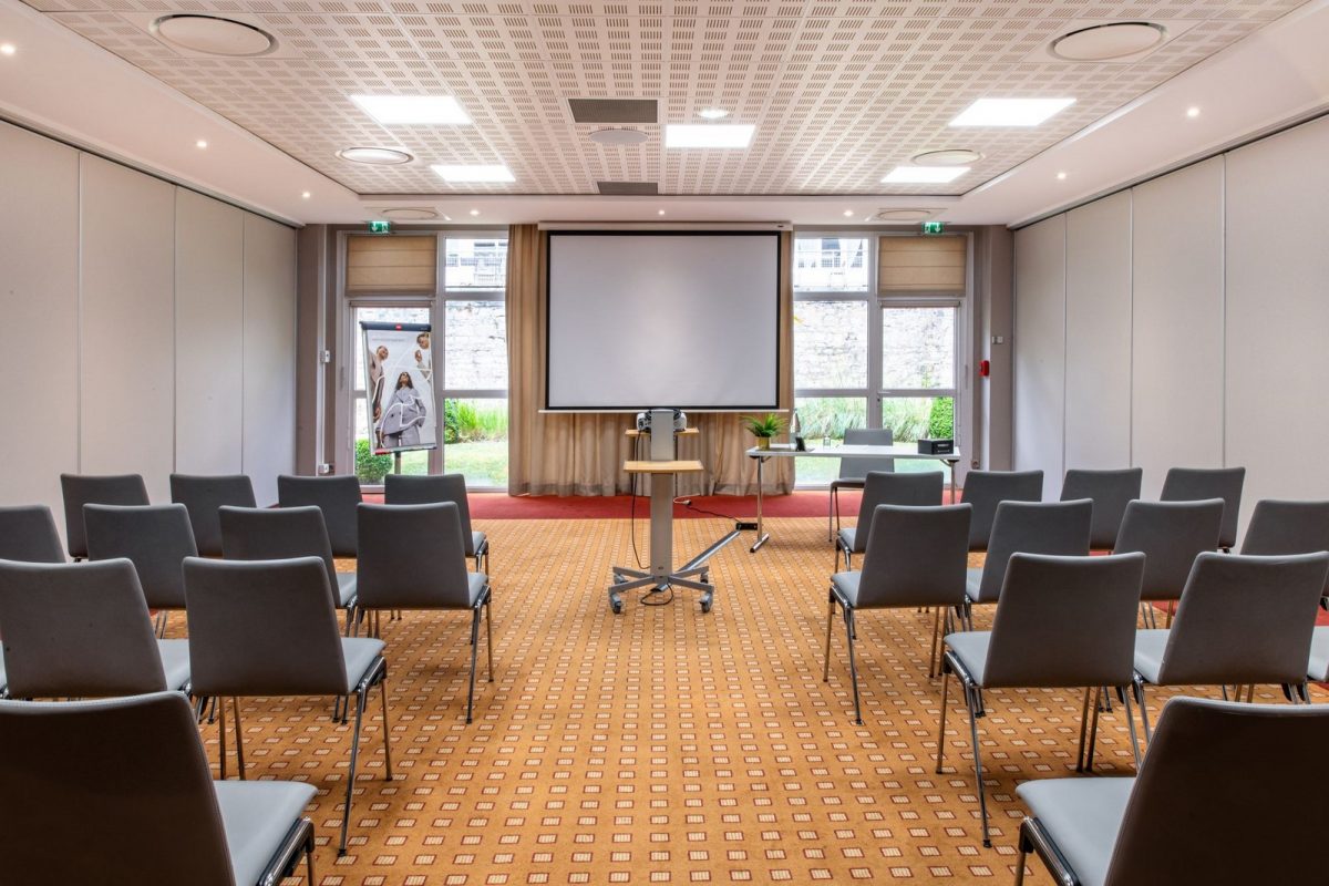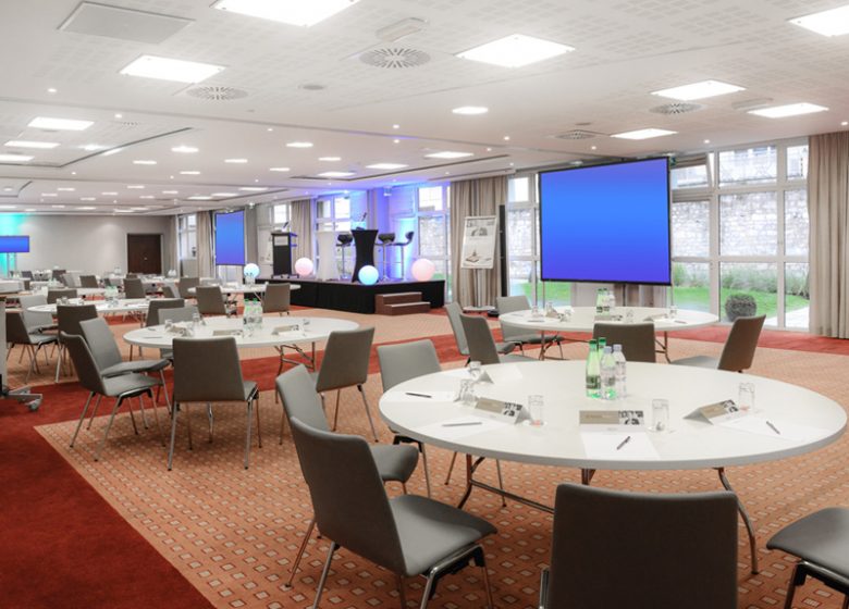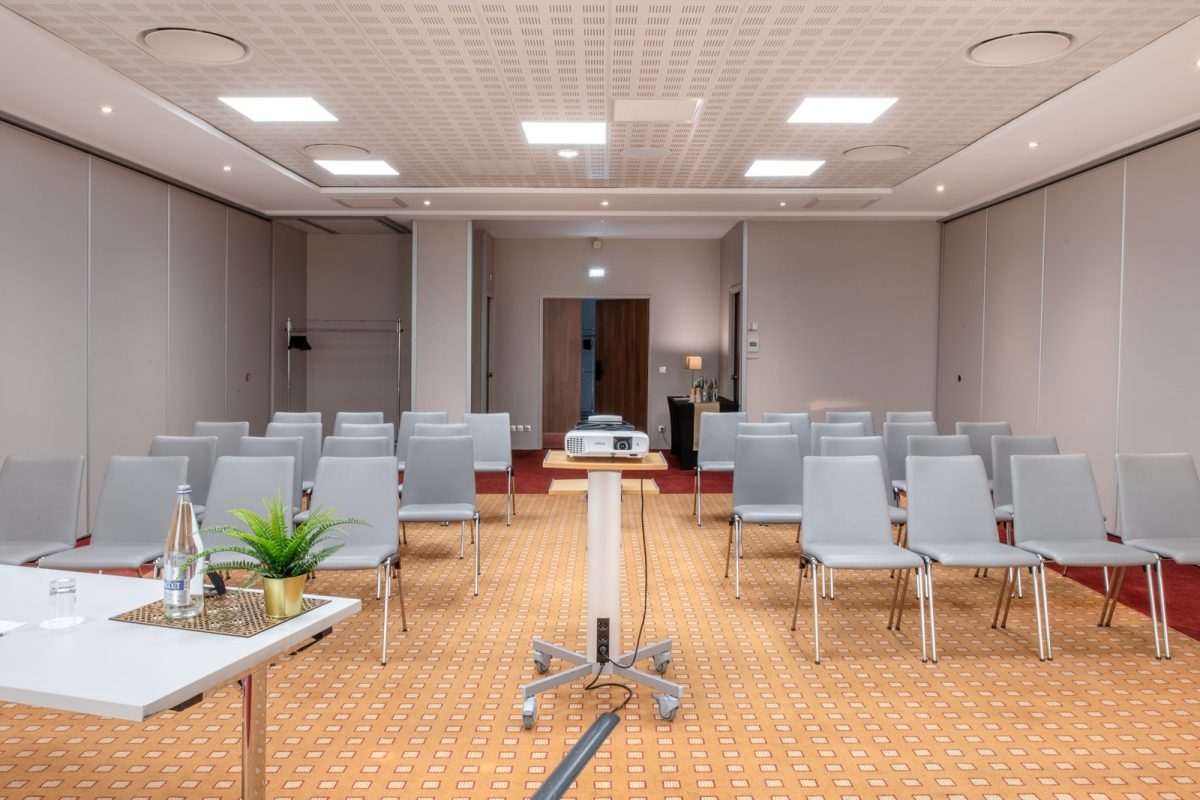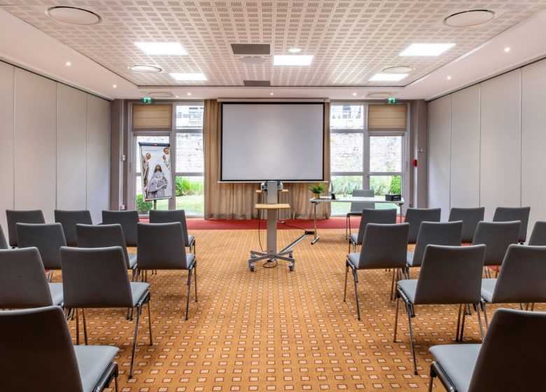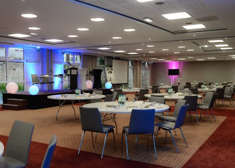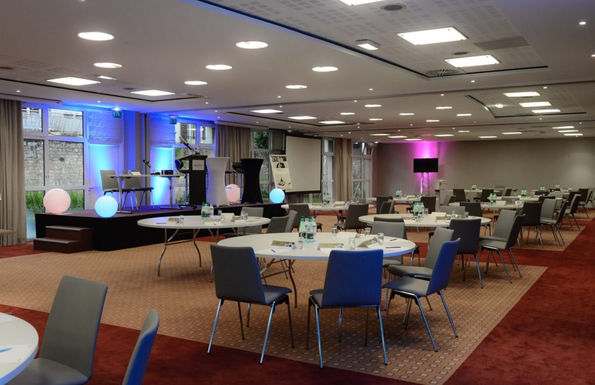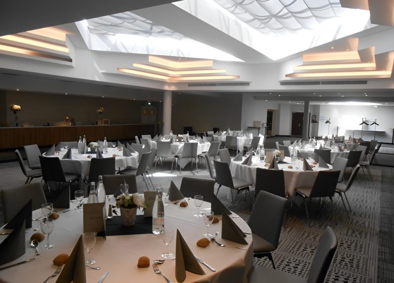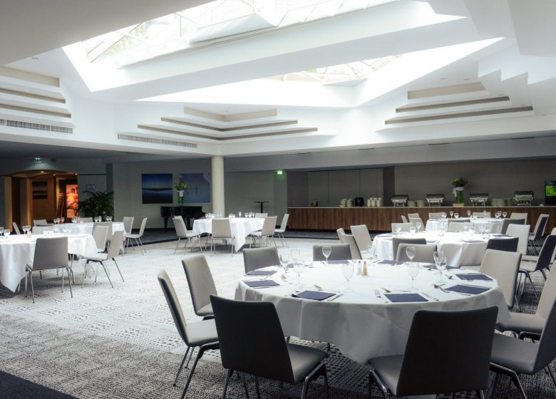 510 m² of modular meeting rooms on the ground floor, opening onto the garden and patio, which can accommodate from 2 to 300 people for conferences, seminars, conventions, works council evenings, banquets, etc. a 450 m² atrium under a glass roof which can accommodate up to 300 people for cocktails. As well as 3 offices upstairs. It has a private car park with 72 spaces.