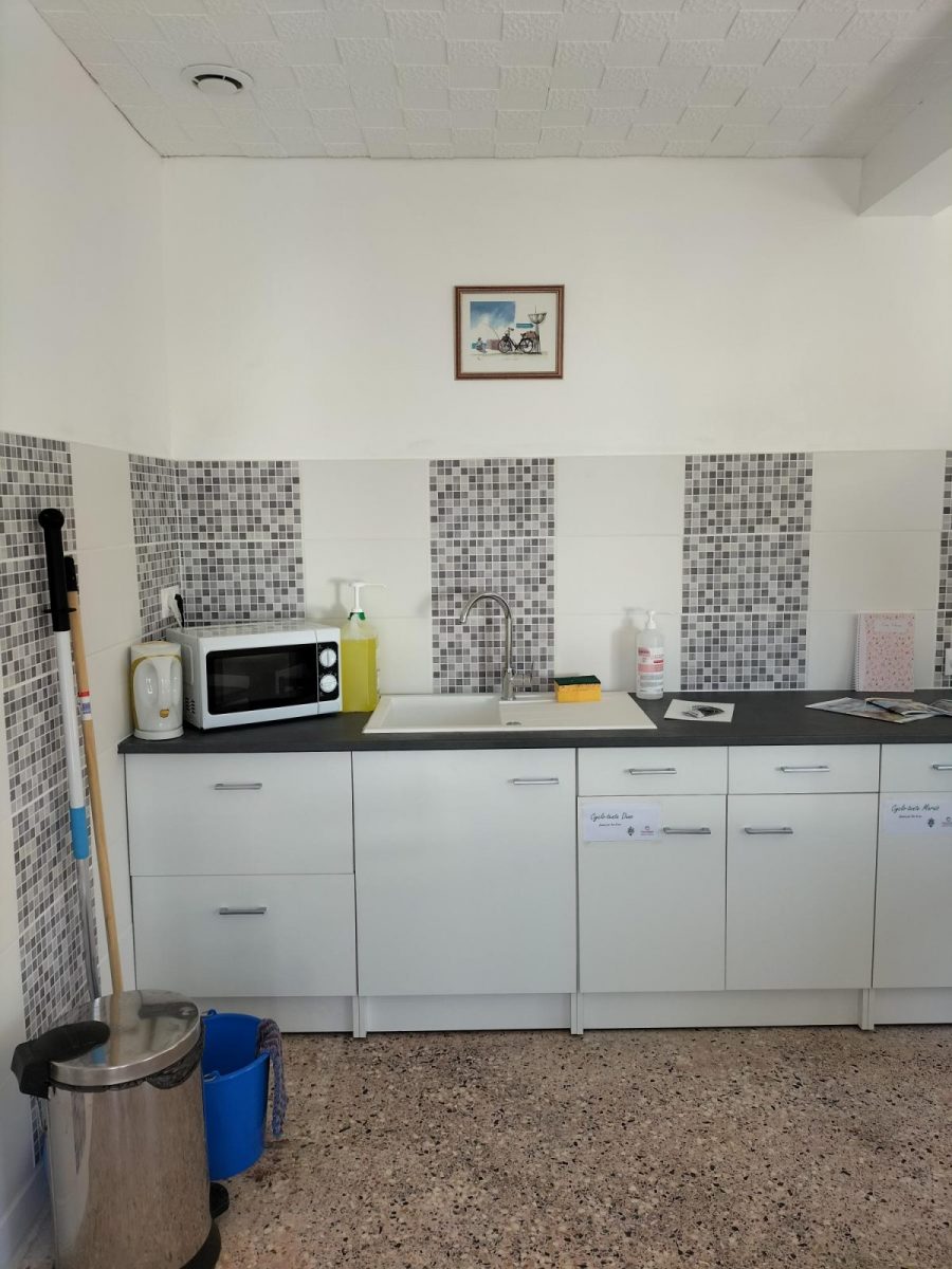 On the reception site, a common equipment to the 2 cyclo'tents will be accessible with digicode. It is composed of a building located a few meters from the tents, a non-sack room with a sink, a small refrigerator, a microwave oven, a cleaning kit (broom, shovel, bucket), as well as a table and 4 chairs, and a sanitary area with a shower, a toilet and a washbasin with mirror.