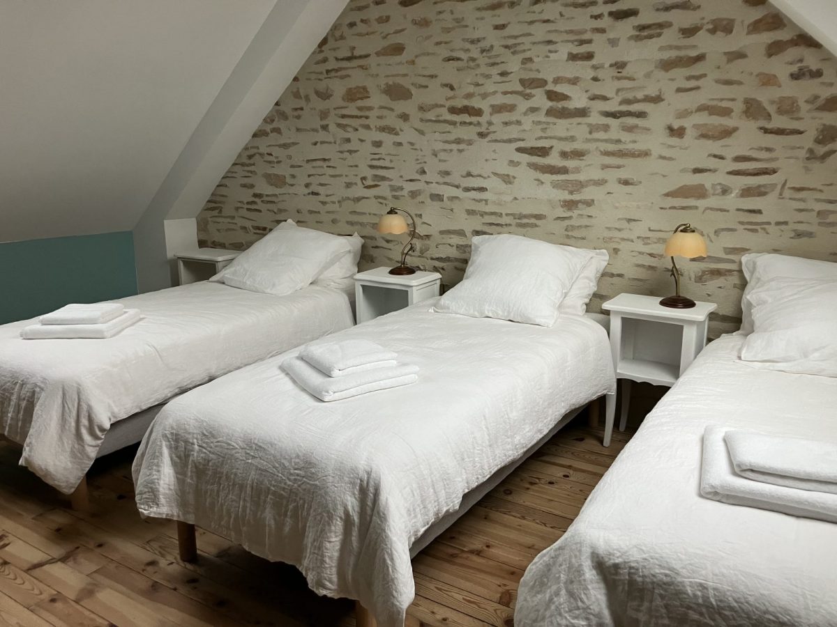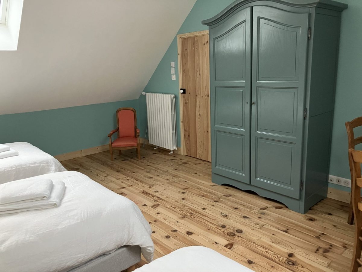 La vélogirouette is an accommodation of 12 places engaged in sustainable tourism: it is an ecogîte. This house near the village is arranged on three levels. On the ground floor, an entrance with WC, a kitchen with a dining area, a large and bright living room with a wood stove and a bedroom (Vélocipède) accessible to people with reduced mobility with an adjoining bathroom and WC. The bed is a 180 cm bed and can be separated into two 90 cm beds. On the second floor a room (tandem) with a double bed (160), a bathroom and a separate toilet. Another room (tricycle) with a double bed (160 cm) and a bed of 90 cm, a bathroom and a separate toilet