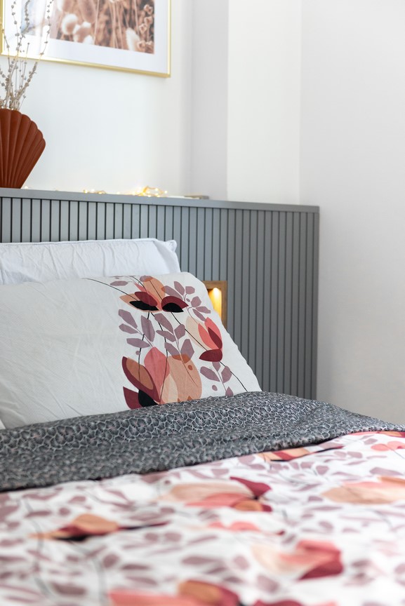 Bedroom with double bed, quality bedding, sheets provided.