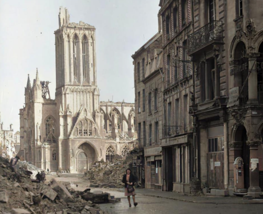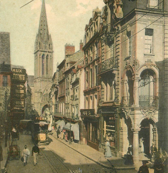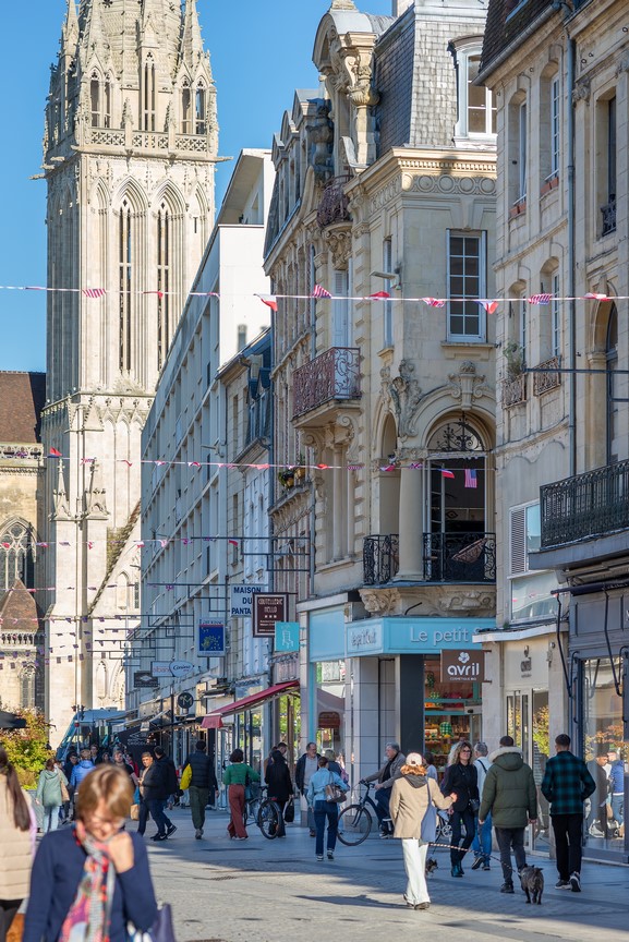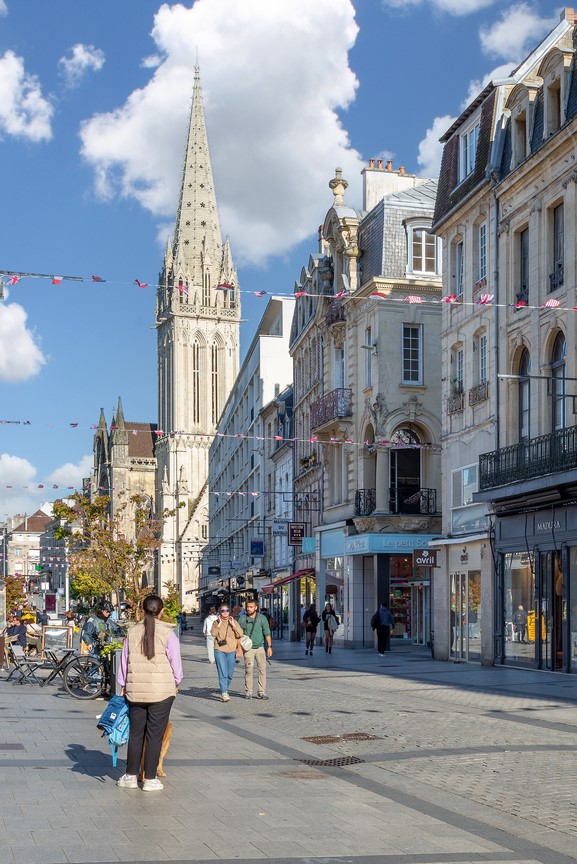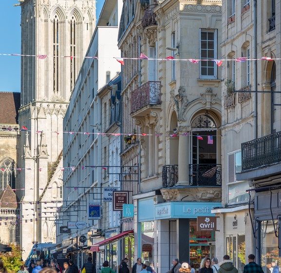 Balcony overlooking the main pedestrian street in downtown Caen.