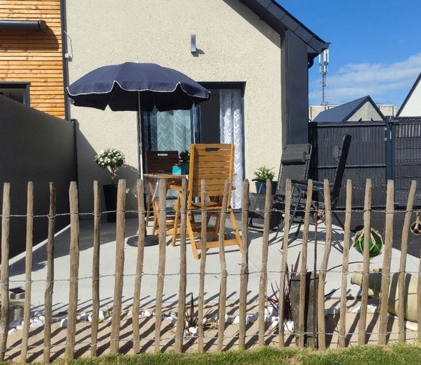 Relax in this charming studio located at Les Jardins de la Brèche in Hermanville sur Mer, opening onto a terrace.