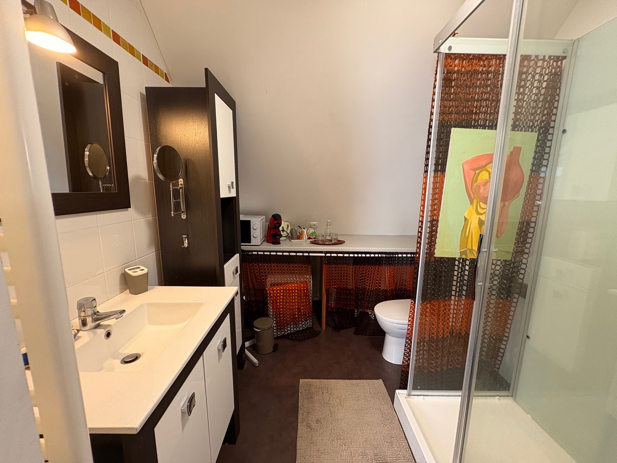 Quiet area near the beach and centre, renovated house with garden and sheltered terrace. 3 bedrooms with fridge and wifi.1 bedroom with double bed 160 and convertible 140, private bathroom and wc next door, south-west facing. 1 bedroom with double bed extendable sofa bed (140cm), slatted bed base, kitchenette and bathroom, wc. 1 bedroom with bed 140, private shower room and wc, south facing.