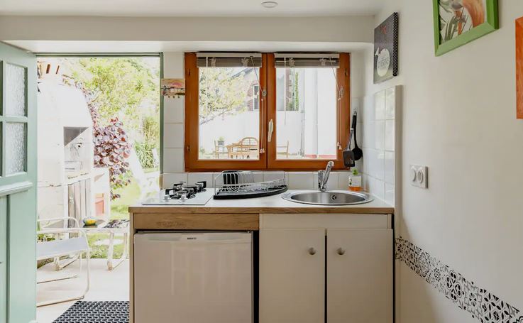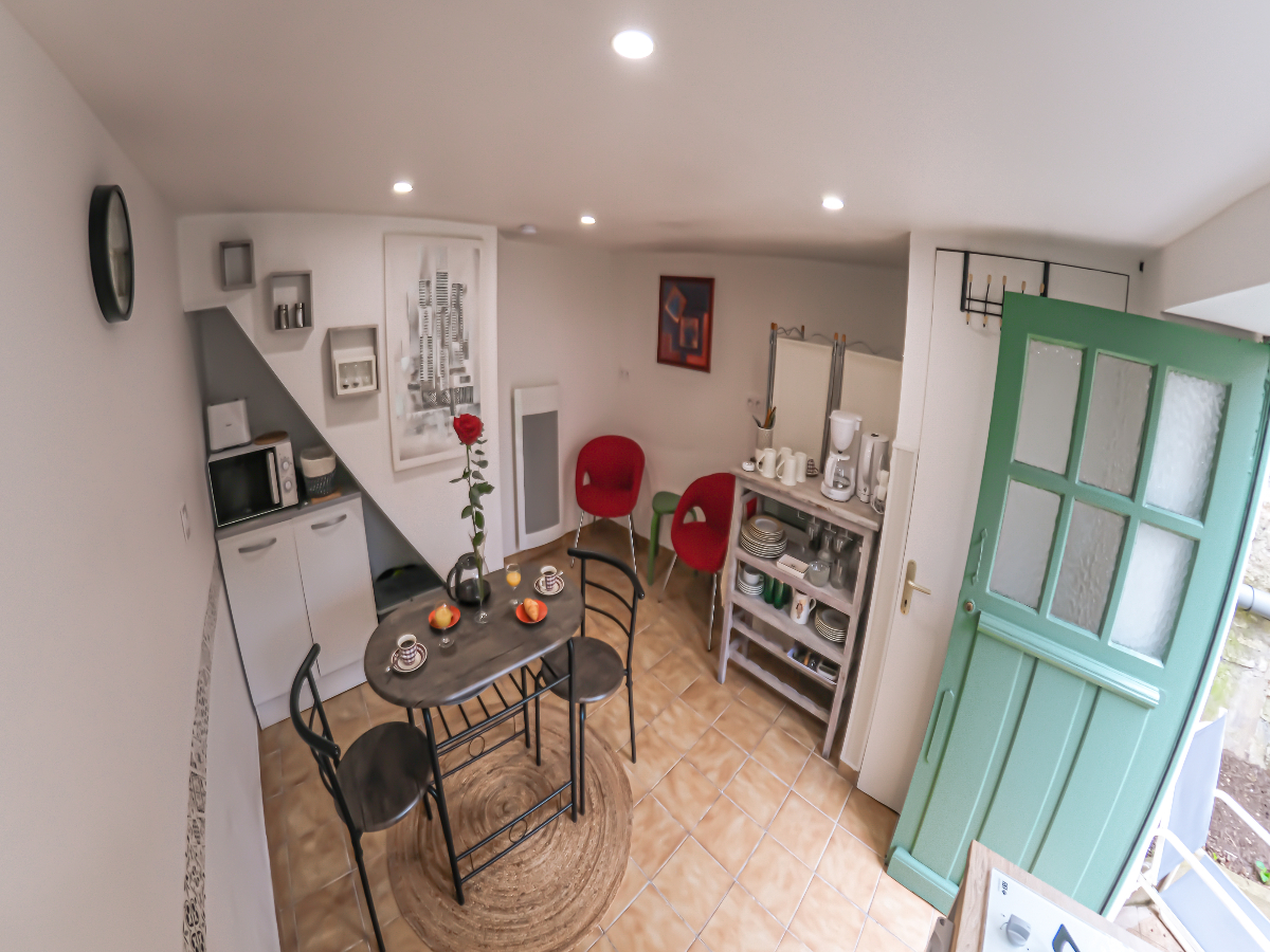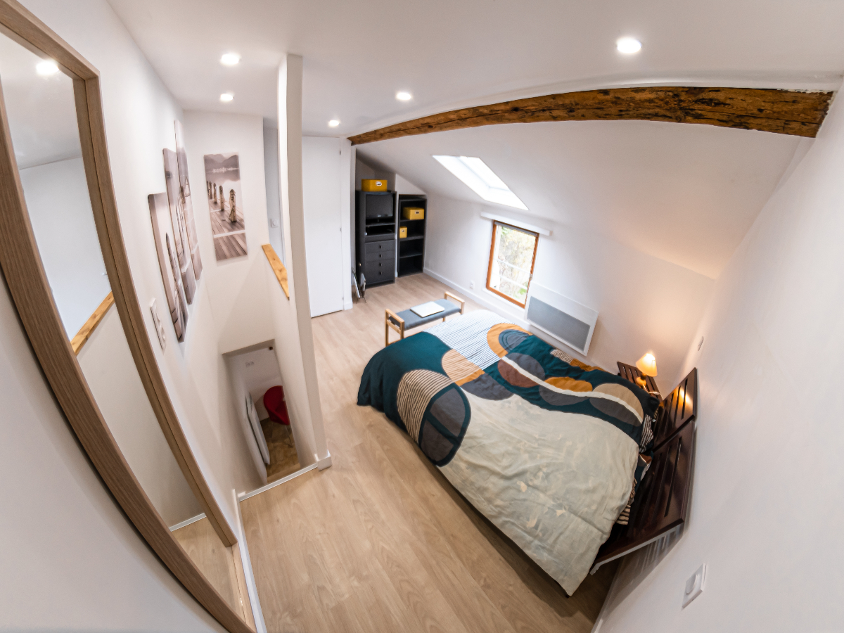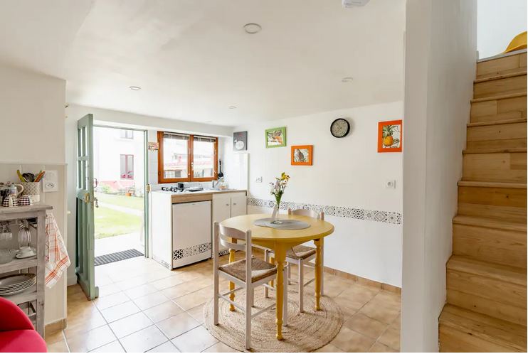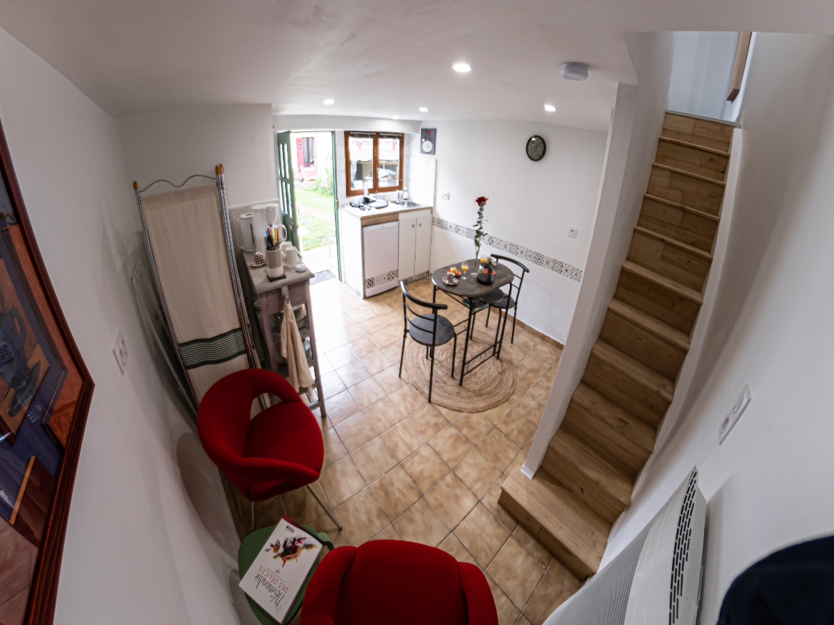 Completely refurbished in 2023, this two-storey, 24m2 cottage, independent of the main house, is freely accessible day and night, via the shared gate and garden.