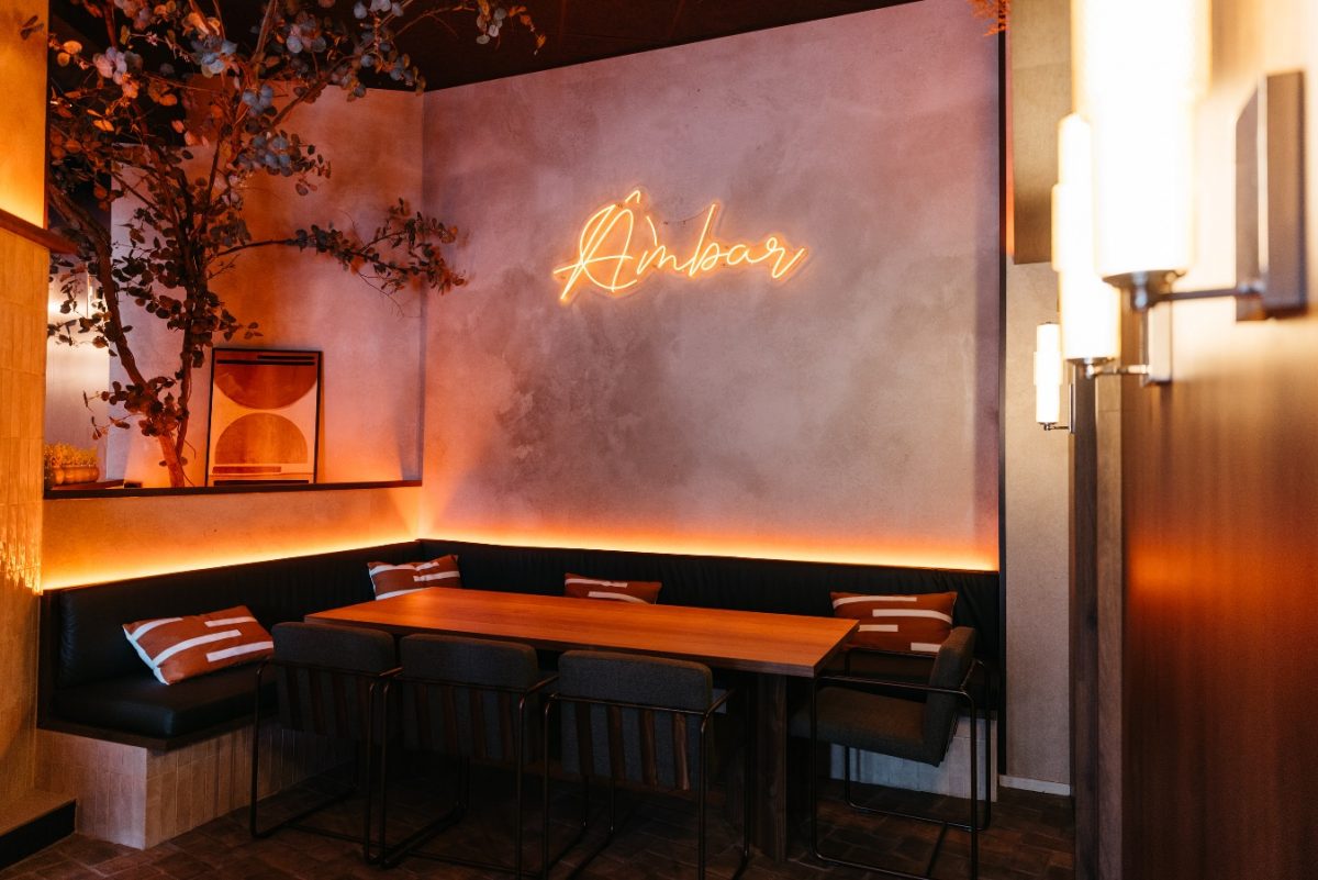 An ultra-friendly atmosphere with a musical backdrop, a bar for eating and dancing, divided into three universes linked to the sun and the color amber - hence our name.