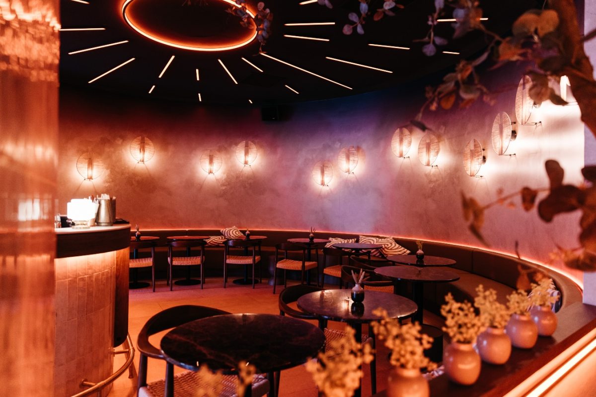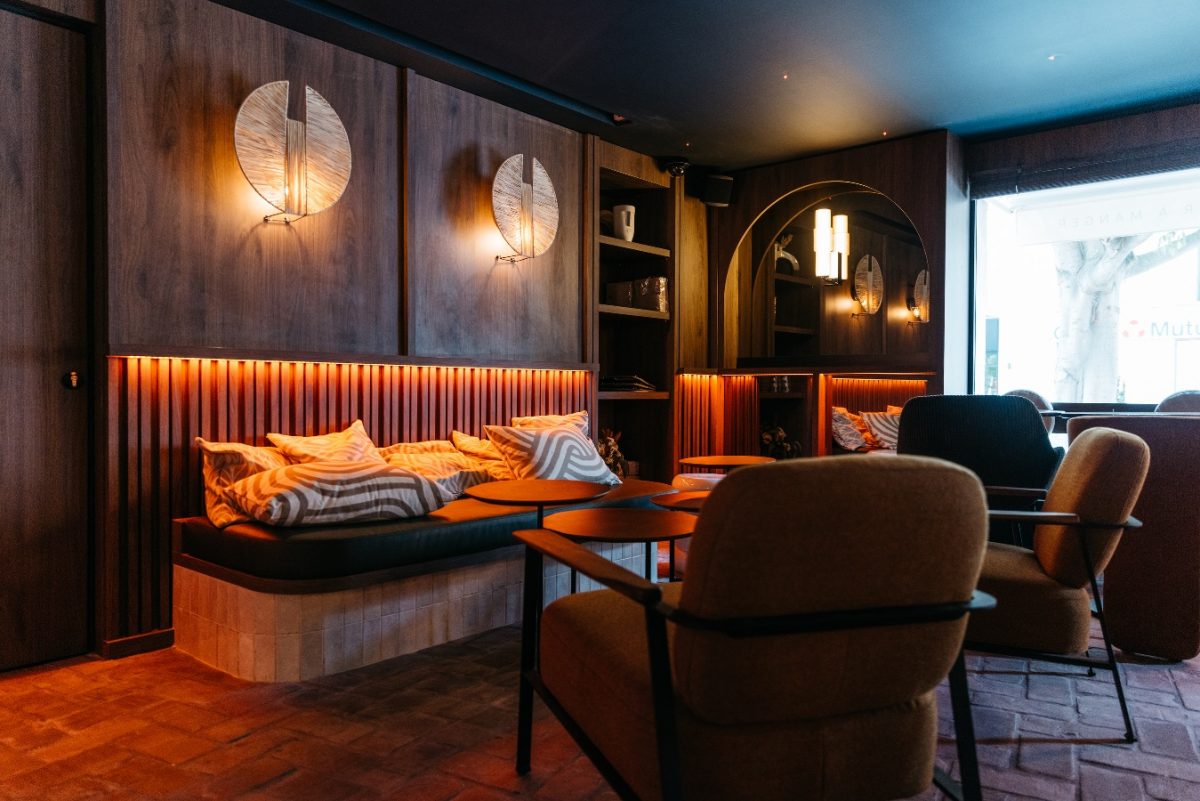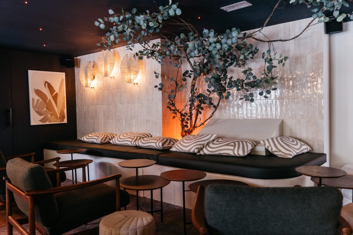 Finally, behind the bar, a huge banquette that can seat up to 30 guests.