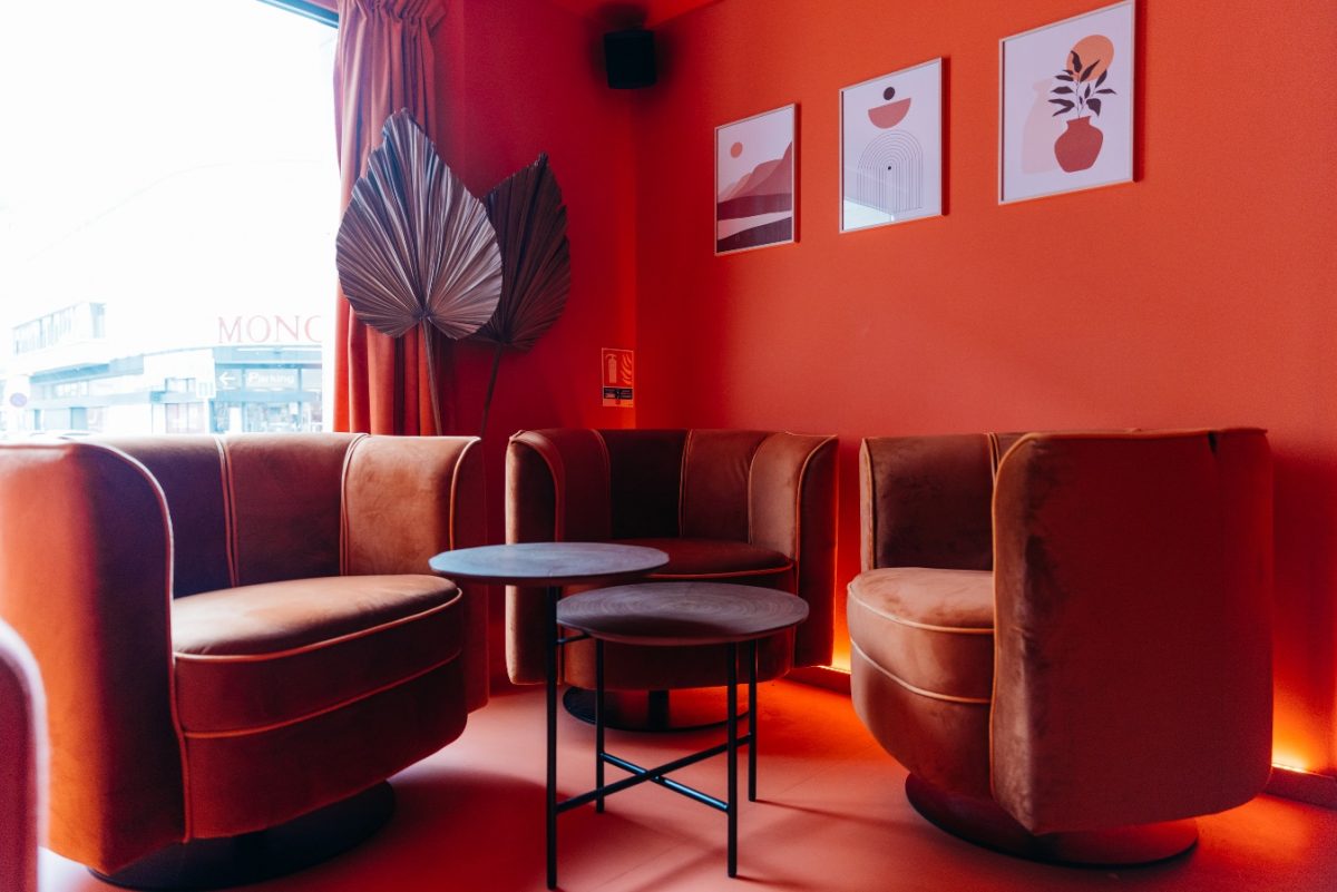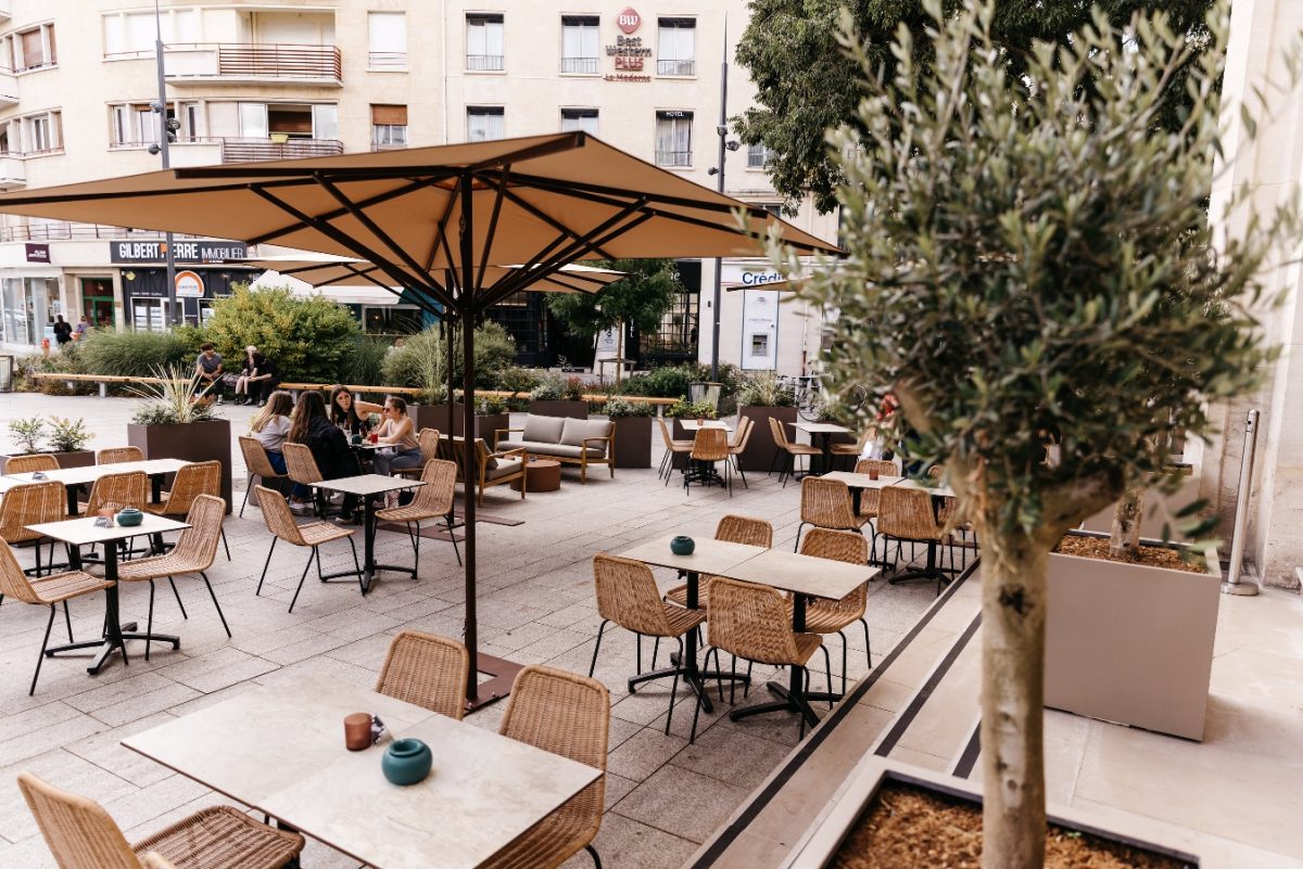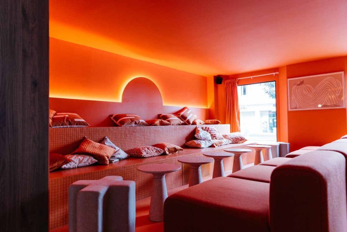 After passing our large terrace, come and discover our majestic central bar, with the first monochrome orange room on your right, reminding you of the setting sun, and the second room on your left, with its Mediterranean decor and contemporary furniture.