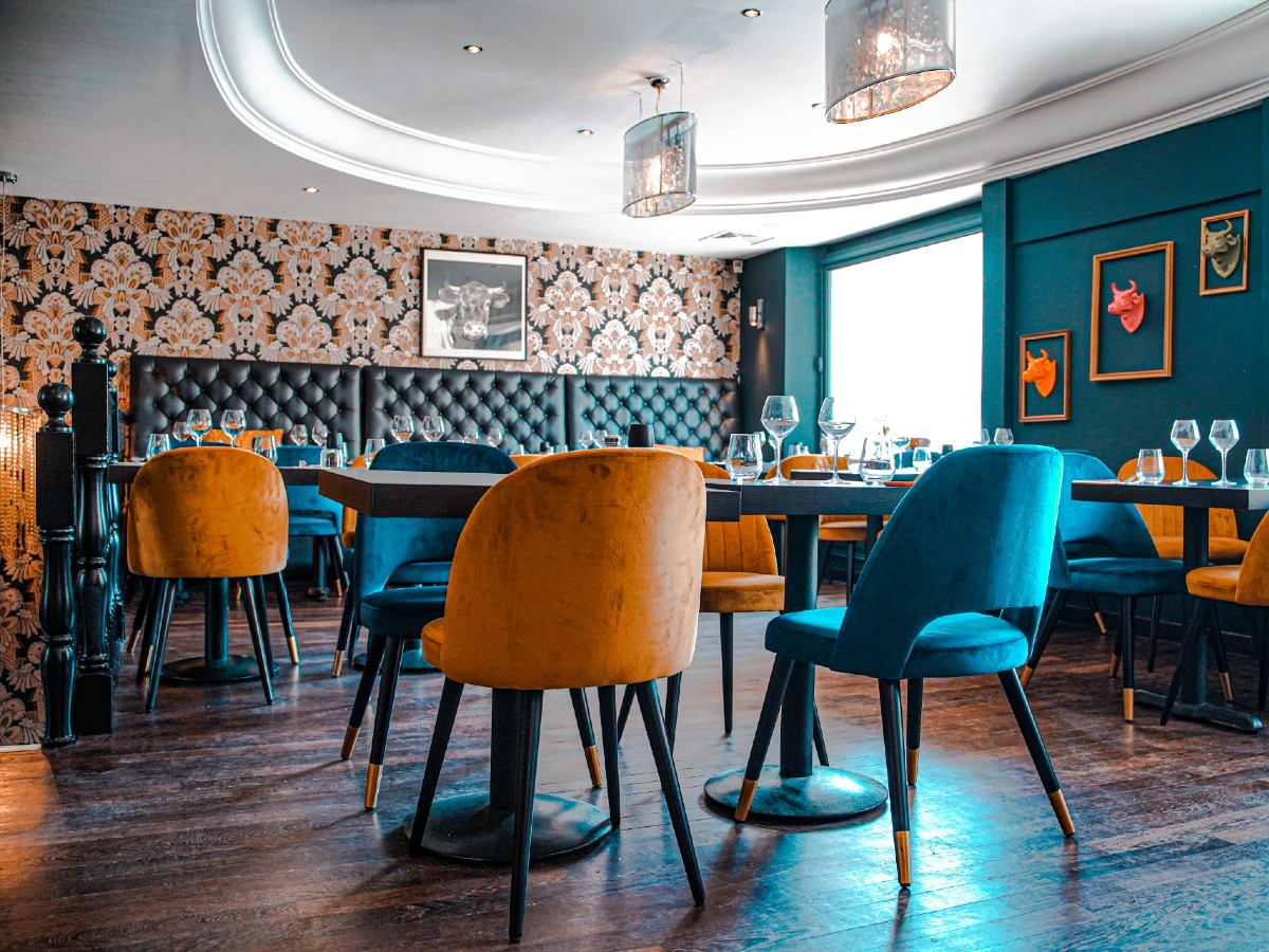 The Boeuf & Cow restaurant, located in the heart of the city centre, welcomes you in an elegant and simple setting with a warm atmosphere and a breathtaking view of the Saint-Pierre church. We offer a 100% home-made cuisine, centred around local meat and quality products, come and taste different cuts of beef from animals raised and slaughtered in Normandy, burgers, tartars, fresh fish, not forgetting other regional products such as tripe and kidneys.