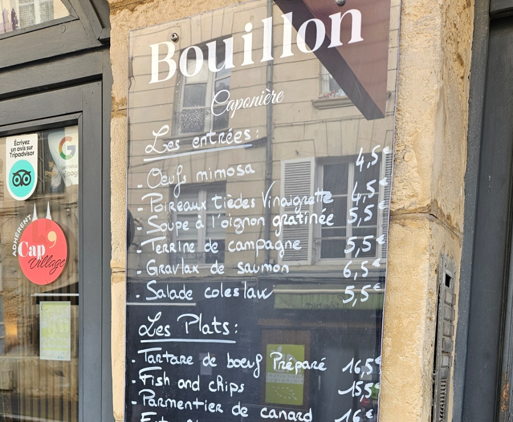 | A la carte menuEntrées : de 4,50 à 6,50 € | 4,50€ | 6,50€ |