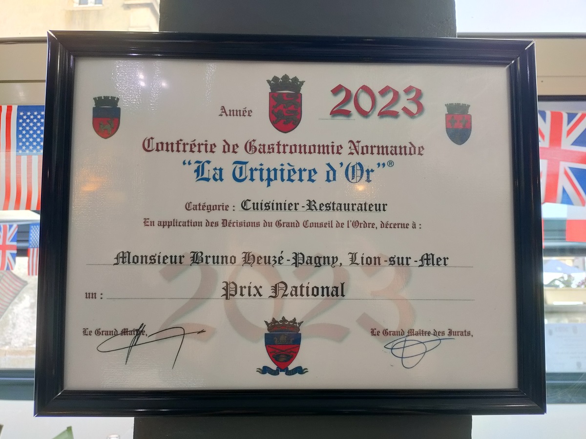 Our tips : The Chef was awarded the National Tripe Prize in 2023 and 2024 by the Norman Confrérie de la Tripière d'Or. Do not hesitate to order your portions of tripe to take away!