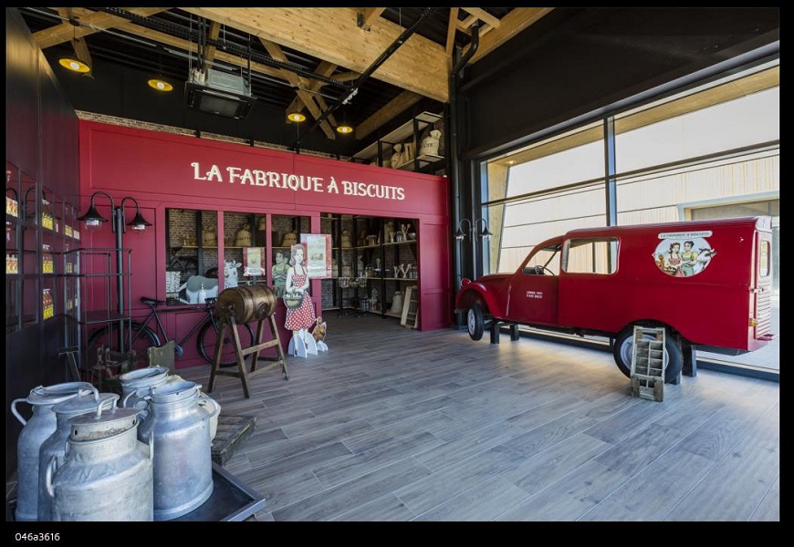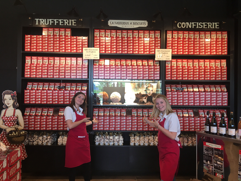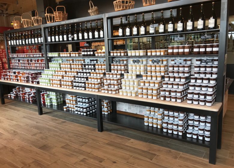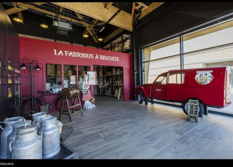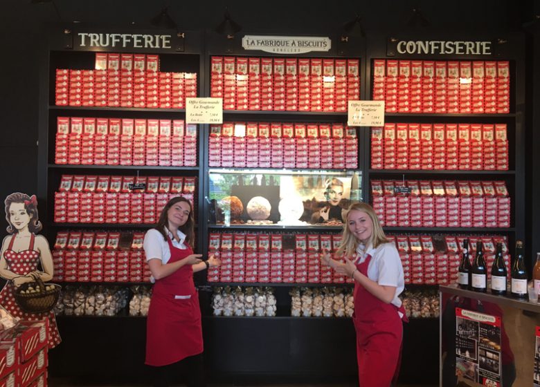 A huge shop and manufacturing workshop combined, in a wonderful 1950s decor. Visitors are greeted by characters telling the story of their first meeting. Biscuits (shortbread, financiers, macar'Honfleur), truffles and "our butters made from…" (salted butter, chocolate and praline caramel). Fine-food products, cider, juice and local jam. Freshly baked madeleines on sale every day at 4:30 pm.
