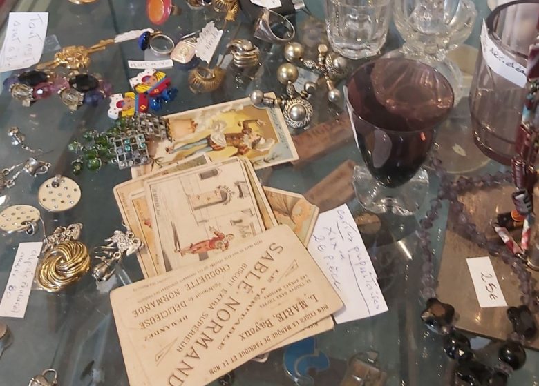 Step inside this bijou little antiques shop near the promenade in Saint-Aubin-sur-Mer and feast your eyes on its treasures and trinkets: jewellery, clothes, furniture, homeware, crockery, ornaments and an impressive collection of all kinds of glassware! Get a warm and friendly welcome from Catherine and Gérard whose passion for their trade is infectious.